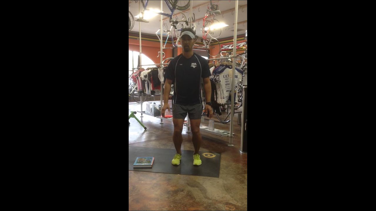 This exercise focuses on gastroc’s, peroneals, posterior muscle chain and core. Key is to keep glutes and transverse adominus (TA) tight. To contract TA, exhale and draw abdomen inwards. This is not the same as “sucking your gut in”. Doing that displaces organs up into the diaphragm. Rather, we are looking too draw the abdomen in which tightens the TA. Hold this contraction throughout the exercise.