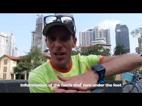 Miniseries on injury prevention through running drills. Plantar Fasciitis is the leading injury amongst runners. In this video, I show you a perfect drill for strengthening the plantar fascia, the tendon like web-like structure that supports the arch of your foot. It runs from heel to toes and carries nearly 14% of the total load on your foot. This drill uses the windlass mechanism to help tighten the fascia by putting your big toe on an elevated platform. Then perform single-leg calf raises and deep stretches by pushing up slowly, hold for 2 seconds and slowly releasing to a deep stretch. Progress to adding load to the body like wearing a backpack or adding dumbbells. Note that some discomfort is ok when performing this drill but lingering pain should not occur.