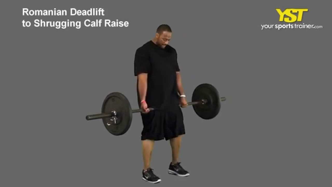 646 – Romanian Deadlift to Shrugging Calf Raise exercise – http://www.YourSportsTrainer.com